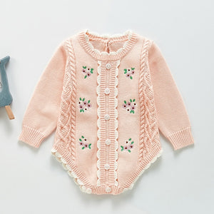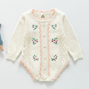 Make your little fashionista's cozy wear collection more chic with the Floral Embroidered Knitted Romper! Featuring a unique floral-inspired design with gorgeous knitted pattern, this romper is crafted with knitted high-quality fabric with a classic bottom crotch opening with button snap closure, making it a practical and a stylish piece for your child.
