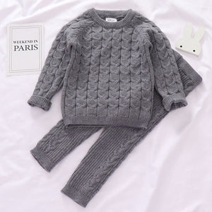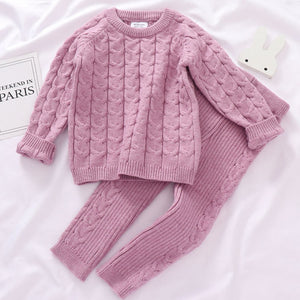 Keep your little ones snug and warm for naptimes and bedtimes and get them this Knitted Cotton Pullover & Pants Set.