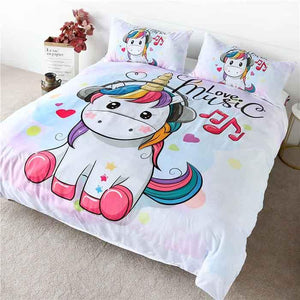 The Little Unicorn Bedding Set transforms any room into a magical place at once. This bedding set features a soft, breathable and hypoallergenic material, designed to resist wrinkles and pilling.