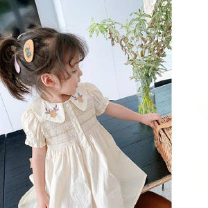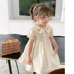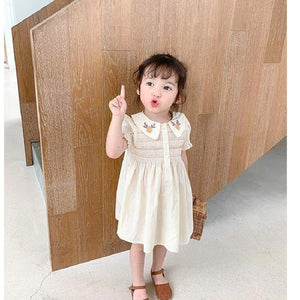 The Lia Beige Dress features a beautiful earthy color tone and pretty embroidered collar. Made from quality cotton, it keeps the kids comfortable all day.
