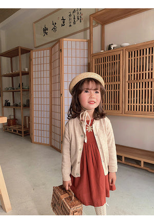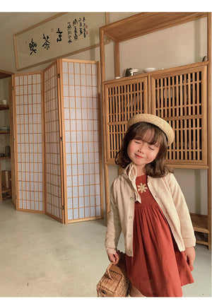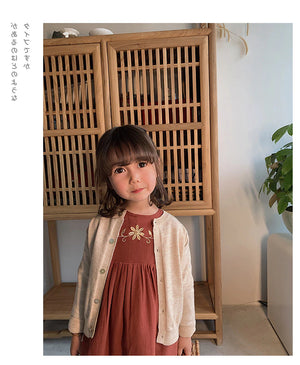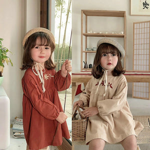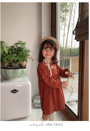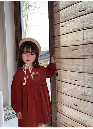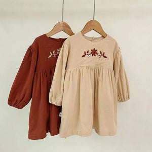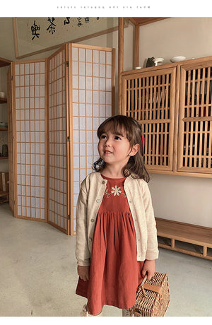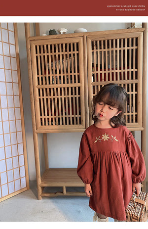 The Meg Floral Dress features a simple floral embroidery design and comes in 2 earthy colors. Made from quality cotton, it keeps the kids comfortable while looking adorable.