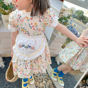 The Clairie Dress is a unique piece with stunning floral prints and a detachable mini apron with two cute chirpy birds on it. Made from quality cotton, it keeps the kids comfortable all day.