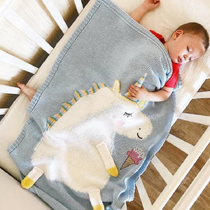 Upgrade your little prince or princess' binkee with this adorable Knitted Unicorn Blanket. This blanket is crafted with high quality knitted acrylic, giving your little one a snug and toasty cover. Call it your child's bedtime buddy, this blanket features an adorable unicorn-inspired design that has won the heart of many kids.