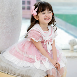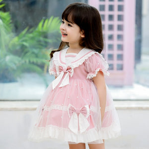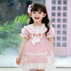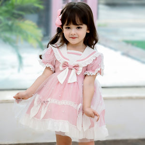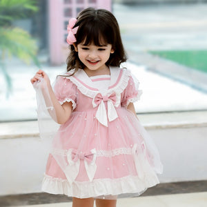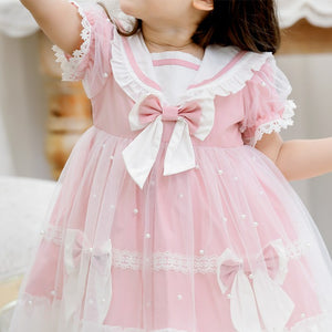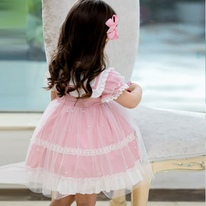 The Pink Ribbon Dress features a cute bow in the center and beautiful lace design that makes your little one feel special.