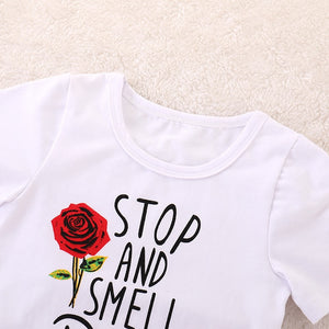 Little ones are indeed full of positivity and what better way to show that off than with a trusty statement shirt like this Smell the Roses 2-Pc Set! This set comes with a floral-inspired shirt design with a positive statement print and a matching distressed denim skirt with patches of floral accents. Made with high quality fabric, it provides a breathable fit.