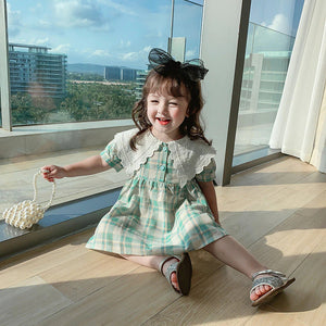 The Sophie Plaid Dress features a beautiful plaid pattern and cute lace puritan collar. Made from quality cotton, it keeps the kids comfortable all day.