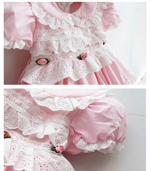 The Vickie Pink Dress features a classic lace embroidery and little rose details that makes this a great piece for all occasions.