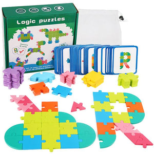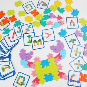 The Creativity Jigsaw Puzzle set comes with colorful and child-safe jigsaw pieces for kids to recreate alphabets, numbers, animals and other commonly used characters. This set comes with 65 jigsaw pieces and 48 double-sided picture cards for many great hours of fun.
