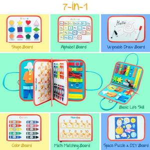 The Outer Space Portable Busy Board is a colorful Montessori toy that keeps the little one entertained anywhere. The 7 sensory boards contain a wide variety of activities that helps to develop the child’s fine motor skills, enhance hand-eye coordination and their cognitive ability to recognize numbers/shapes/color. The handheld and compact design allows kids to take it everywhere.