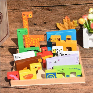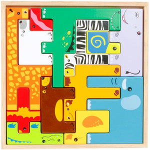This colourful puzzle toy is designed to improve children's logical thinking and hand-eye coordination. Kids will have hours of fun creating various shapes with this twist on the classic Tetris game, fitting them on the wooden tray, putting the animal blocks into endless combinations and trying to balance them on top of each other.