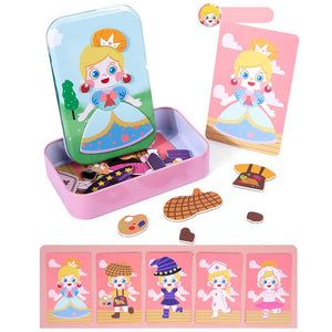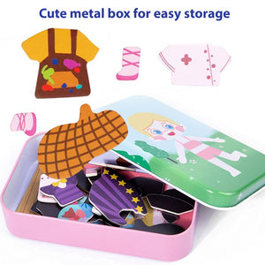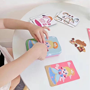 Dressing up Tiffany is a beautiful portable dress up game for the little one. Stored in the compact metal box are magnetic pieces of clothing and picture cards to follow. Go wild with the combinations and create something truly stunning and personal.